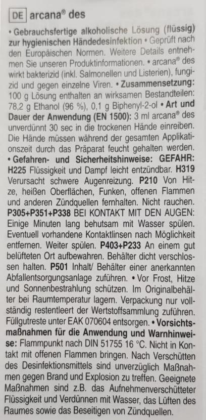 | Entsorgungshinweis | Verpackung nur vollständig restentleert der Wertstoffsammlung zuführen. Füllgutreste unter EAK 070604 entsorgen. |